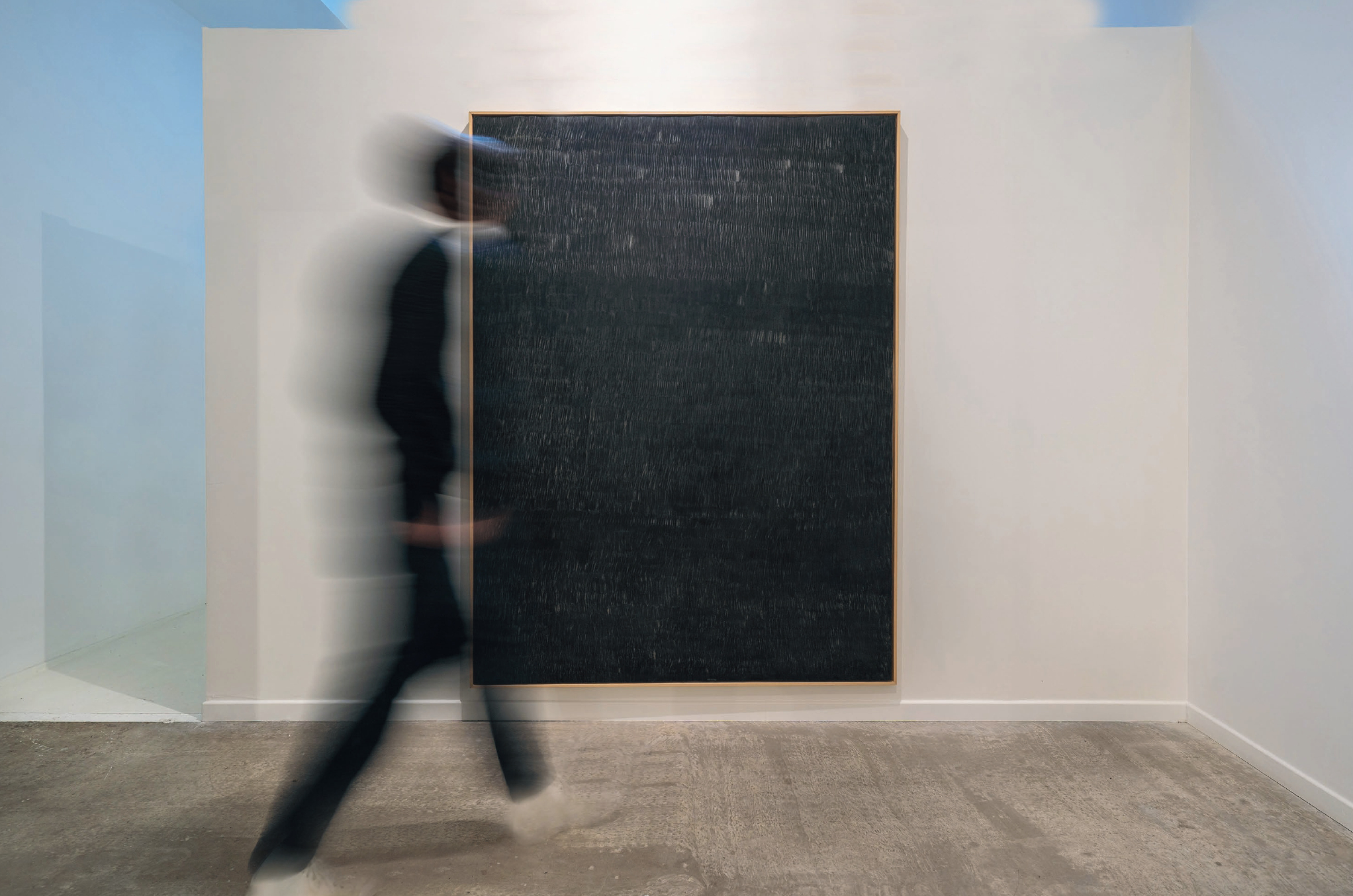Comme une partition s’effacerait au fur-et-à-mesure qu’elle s’écrit, les recherches du peintre suggèrent une réflexion sur l’impalpable, l’indicible. Situé entre notre corps d’observateur et la masse picturale, l’insaisissable espace se densifie : « Je peins pour explorer les silences, pour interroger un espace avant le langage. ».